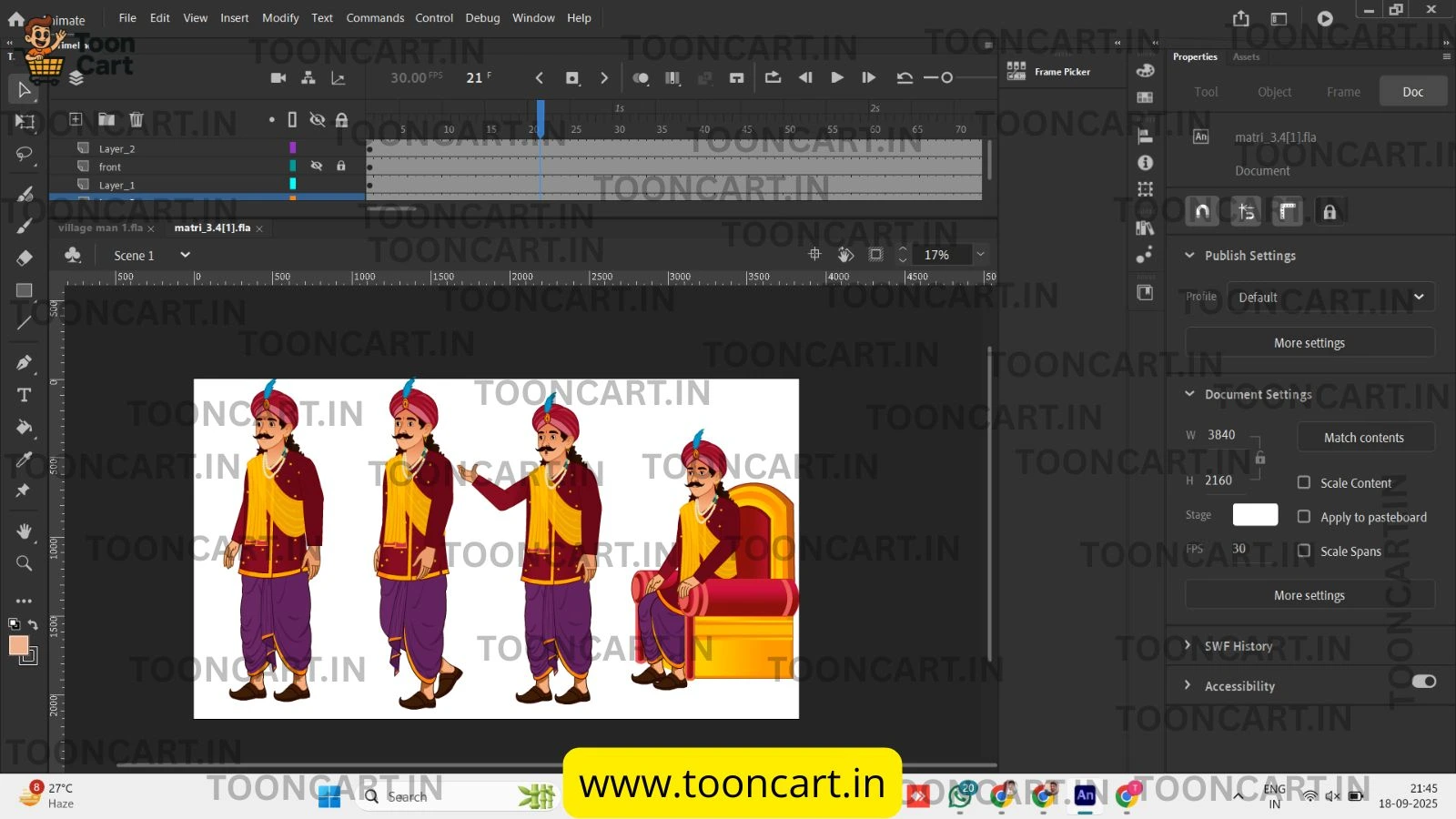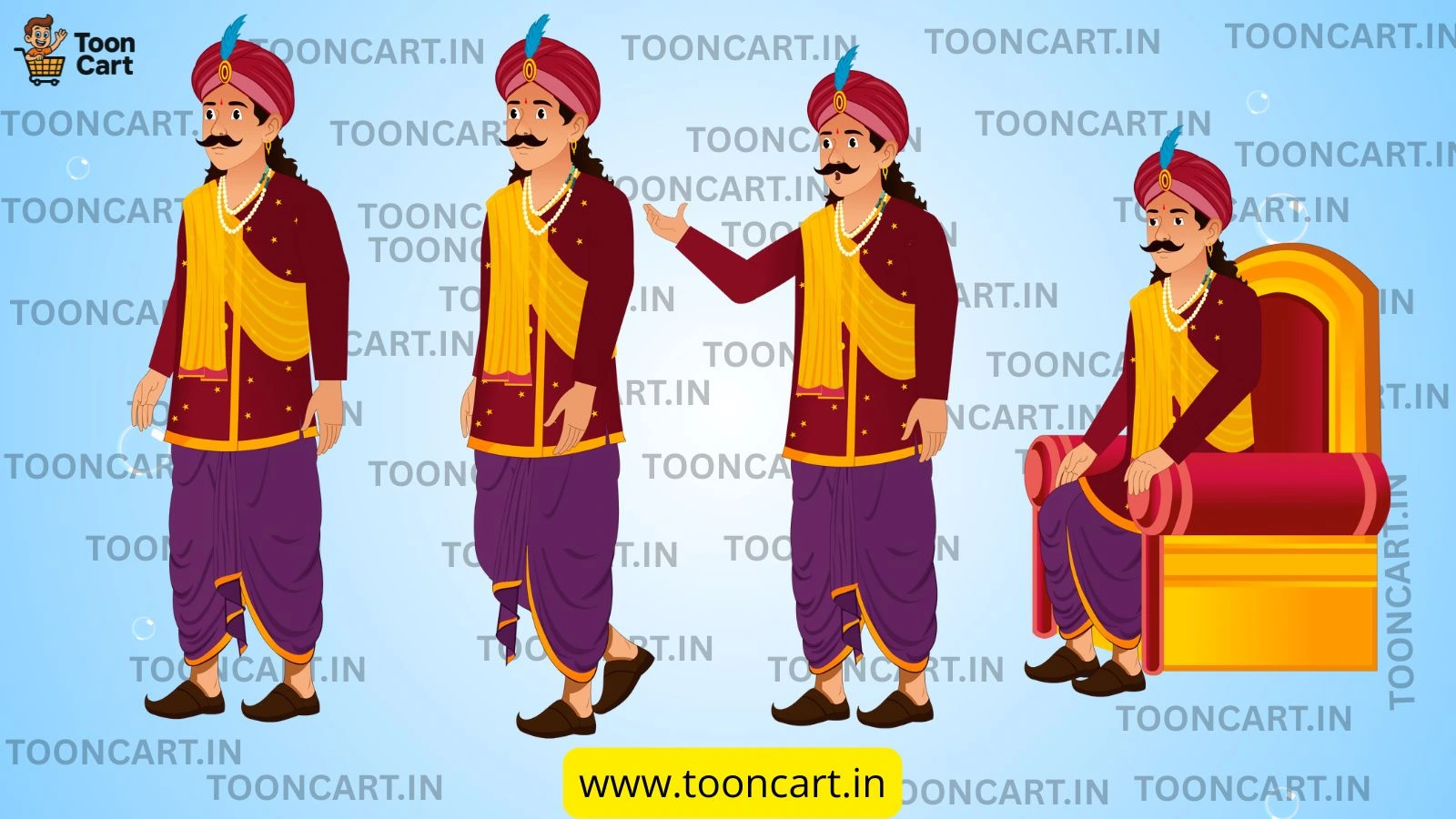 Bring royal grandeur to your 2D projects with this Mantri Animated Character Pack with Throne. Designed in vibrant vector style, this set features a traditional Indian mantri in multiple poses – standing, walking, gesturing and sitting on a majestic throne.
